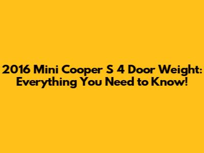 Knowing the weight of your 2016 Mini Cooper S 4 Door isn't just about the numbers; it's about understanding the car and how it works. From the fun and responsive handling to the efficiency of the engine, the weight of the car plays a vital role in its overall performance. Whether you are a car enthusiast, a potential buyer, or just someone who loves the Mini brand, knowing these details will give you a better appreciation for your ride. So next time you are behind the wheel, take a moment to consider all the factors that make the 2016 Mini Cooper S 4 Door such a joy to drive! If you have any questions or want to learn more about a specific topic, feel free to ask! Drive safe, and enjoy the ride!