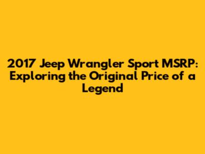 The 2017 Jeep Wrangler Sport, with its approachable MSRP and iconic design, remains a favorite among Jeep enthusiasts. Its simplicity, capability, and customization potential make it a compelling choice for both new and experienced off-roaders. Understanding the original price point and factors influencing it empowers buyers to make informed decisions in the used market. Whether you're dreaming of hitting the trails or simply cruising around town, the 2017 Jeep Wrangler Sport offers a unique and rewarding driving experience that's hard to match. So, do your research, follow our tips, and get ready to experience the freedom and adventure that only a Jeep Wrangler can provide! The enduring appeal of the Jeep Wrangler Sport will continue to thrive because it gives the user a sense of adventure! Have fun out there and be safe!