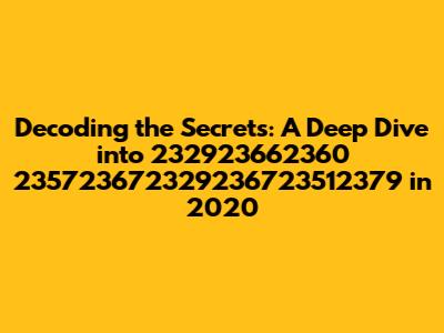 Decoding The Secrets: A Deep Dive Into 232923662360 235723672329236723512379 In 2020
