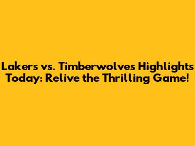 Lakers Vs. Timberwolves Highlights: Epic Showdown!