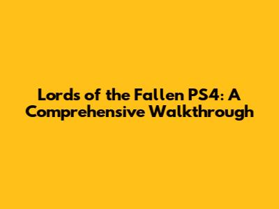 Lords Of The Fallen PS4: A Comprehensive Walkthrough